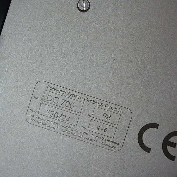 Der DC 700 ist ein pneumatisch betriebener, halbautomatischer Basis-Doppelclipper für die Produktion aller Standard-Wurstsorten. Er verarbeitet S-700-Clips und eignet sich für große Kaliber bis 115 mm sowie Faserdärme.
