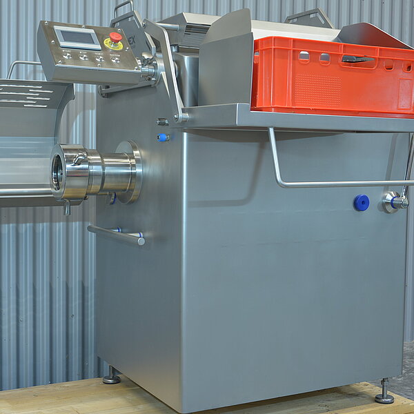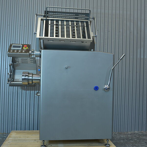Universalmaschine für kleine und mittlere Betriebe zum Wolfen, Zerkleinern und Schneiden von frischem, gekühltem und schonend gefrorenem Fleisch - inklusive automatischer Kistenentladung. Optional mit Singriset-Separiersystem verfügbar.